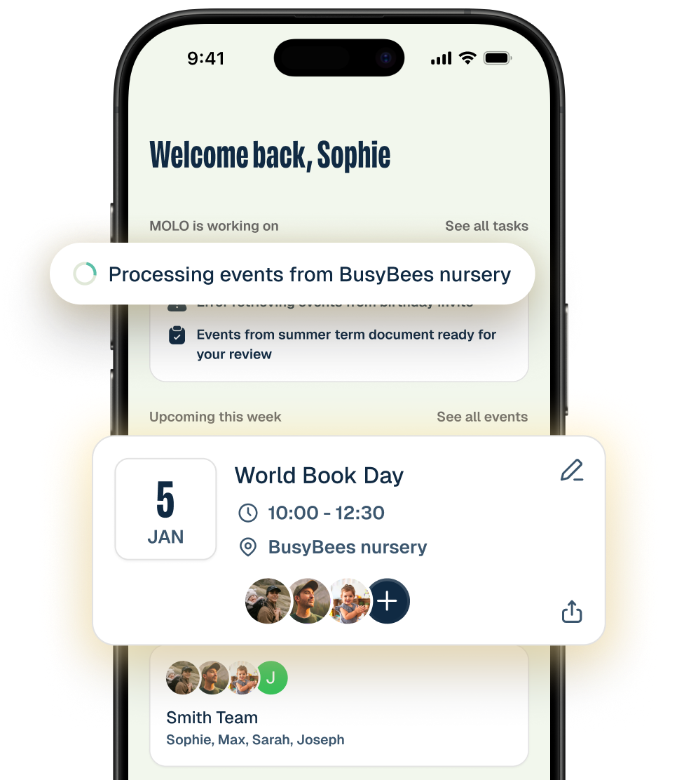 MOLO is shaped around the family it supports. It builds familiarity over time, holding the context that usually lives in your head, so support feels considered.